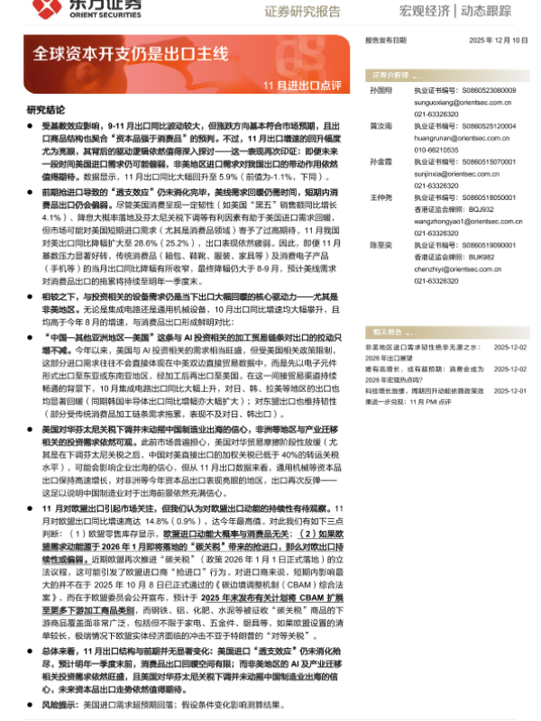 【东方证券】【202512】11月进出口点评_全球资本开支仍是出口主线-4页 证券期货研究报告