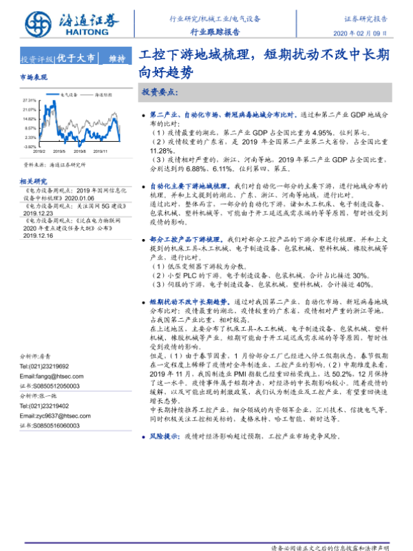 【海通证券】【20200209】电气设备:工控下游地域梳理,短期扰动不改中长期向好趋势-8页 行业研究