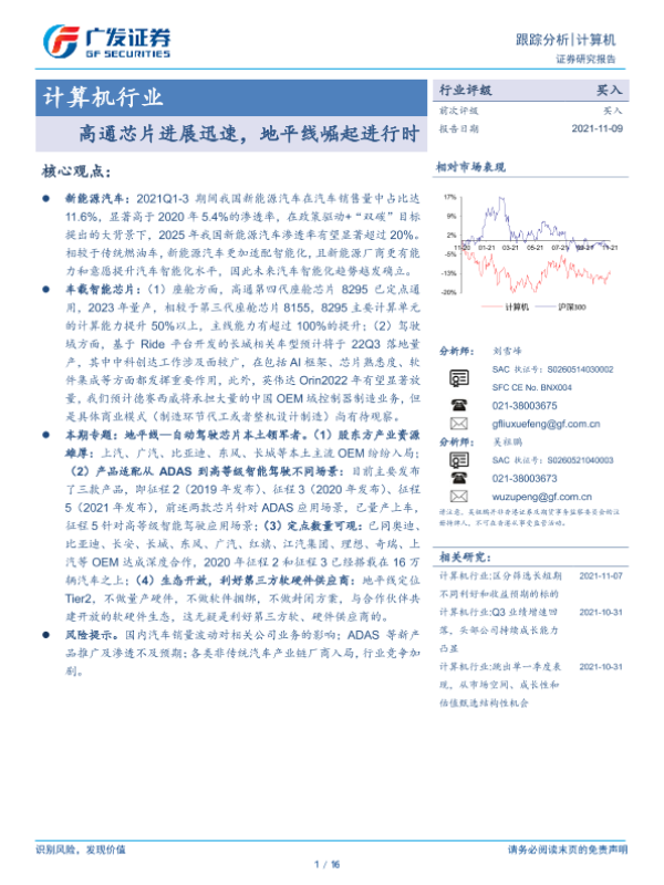 【广发证券】【20211109】计算机行业:高通芯片进展迅速,地平线崛起进行时-16页 行业研究