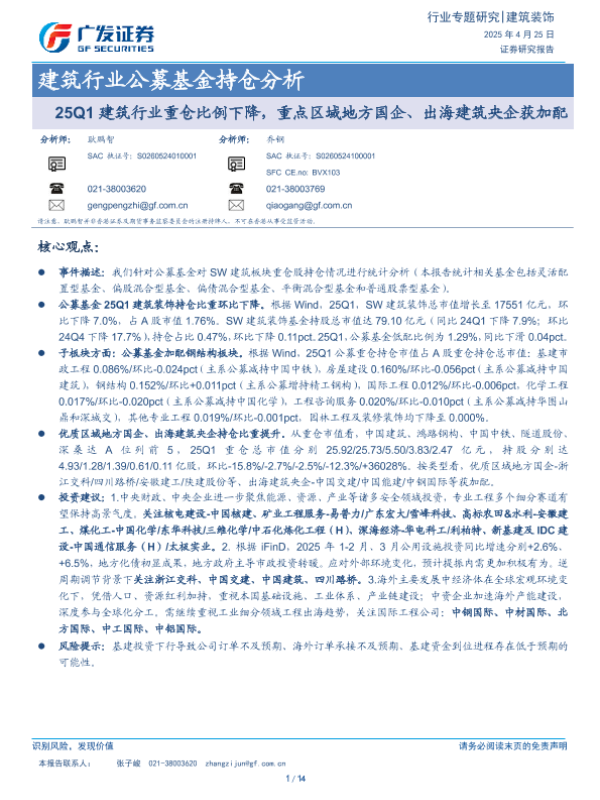 【广发证券】【20250425】建筑行业公募基金持仓分析-14页 证券期货研究报告
