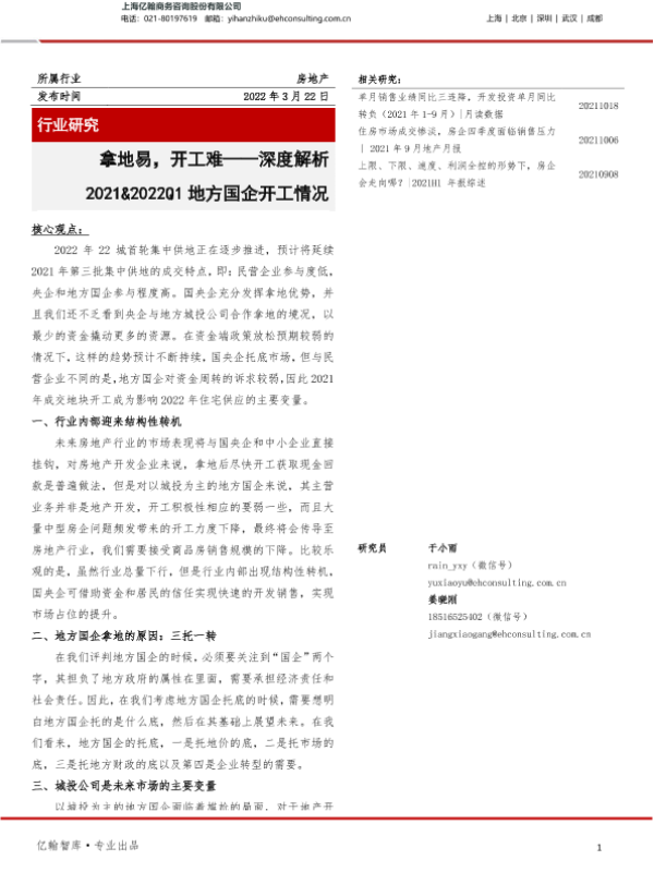 【亿翰智库】【20220322】深度解析2021&2022Q1地方国企开工情况-16页 行业研究