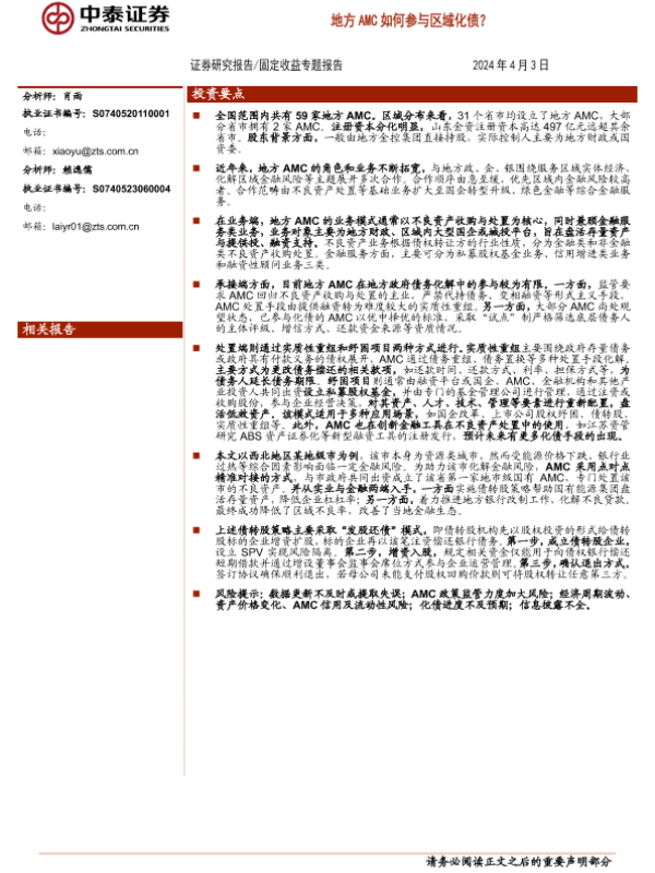 【中泰证券】【20240403】固定收益专题:地方AMC如何参与区域化债?-15页 行业研究