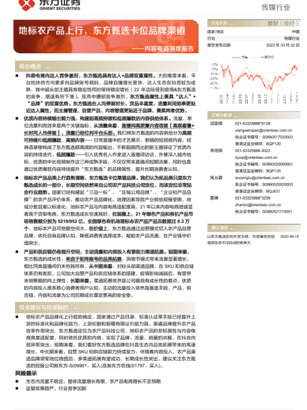 【东方证券】【20230302】2023-03-03-内容电商深度报告-地标农产品上行-东方甄选卡位品牌渠道-60页 行业研究