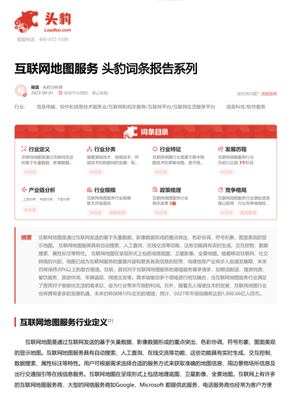 【头豹研究院】【202309】互联网地图服务 头豹词条报告系列-19页 行业研究