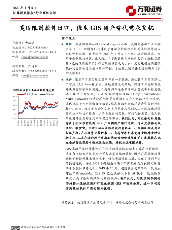 【万和证券】【20200106】美国限制软件出口,催生GIS国产替代需求良机-5页 行业研究