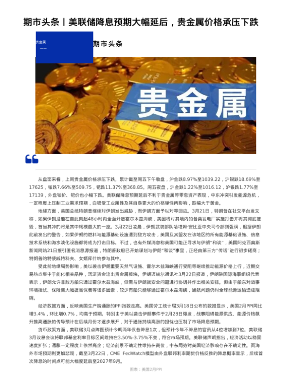 【广州期货】【202603】期市头条丨美联储降息预期大幅延后_贵金属价格承压下跌-4页 证券期货研究报告