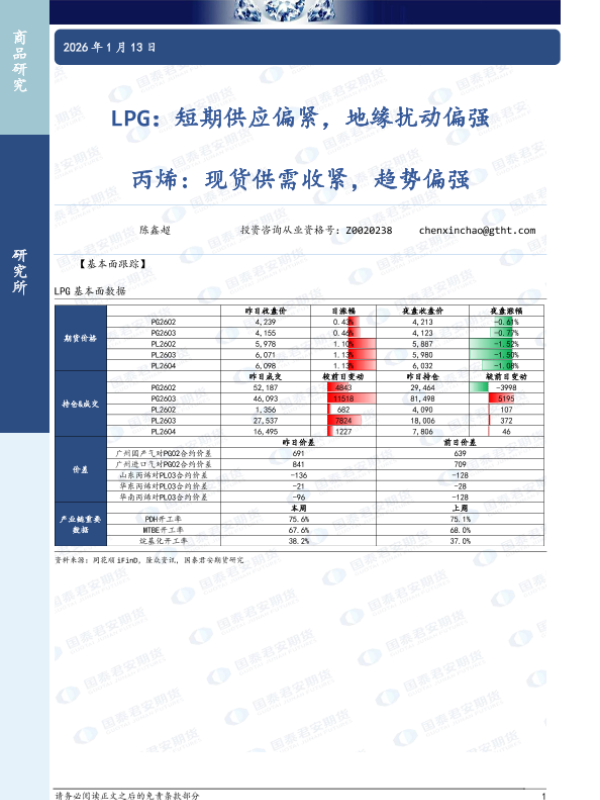 【国泰君安期货】【202601】LPG:短期地缘扰动偏强 丙烯:需求支撑坚挺,现货强势走高-4页 证券期货研究报告