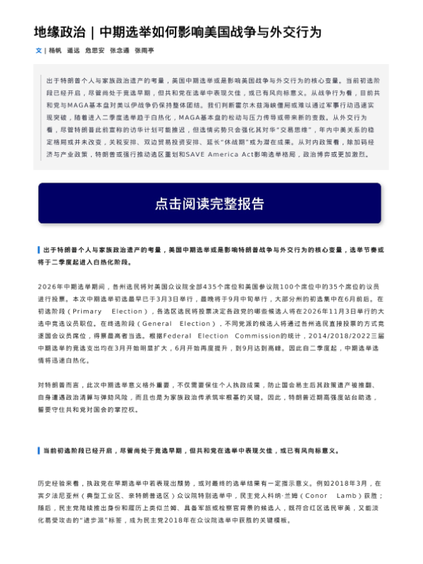 【中信证券】【202603】地缘政治|中期选举如何影响美国战争与外交行为-4页 证券期货研究报告