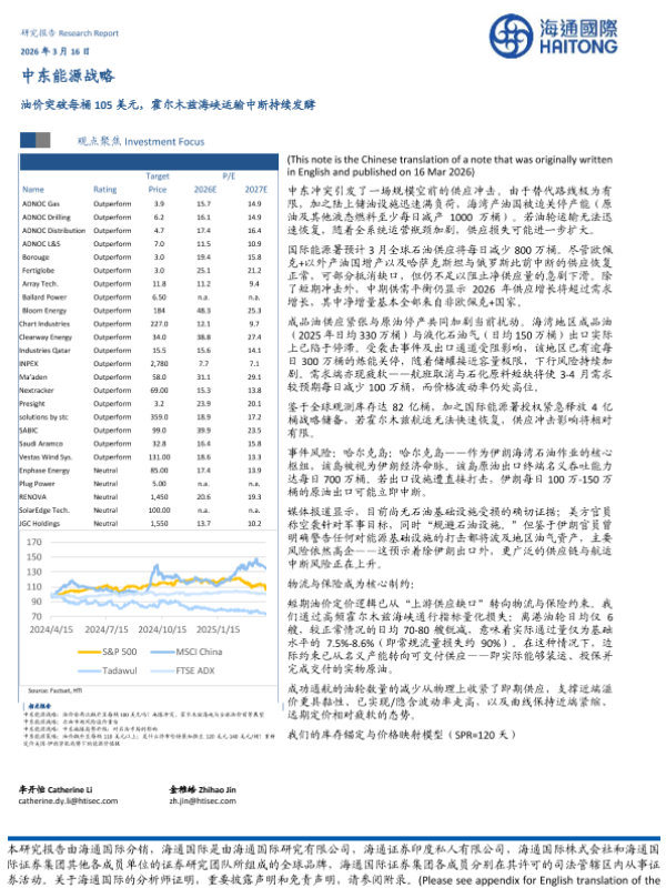 【海通国际】【202603】中东能源战略:油价突破每桶105美元,霍尔木兹海峡运输中断持续发酵-15页 证券期货研究报告