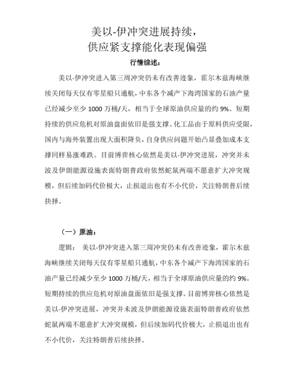 【天富期货有限公司】【202603】美以-伊冲突进展持续_供应紧支撑能化表现偏强-13页 证券期货研究报告