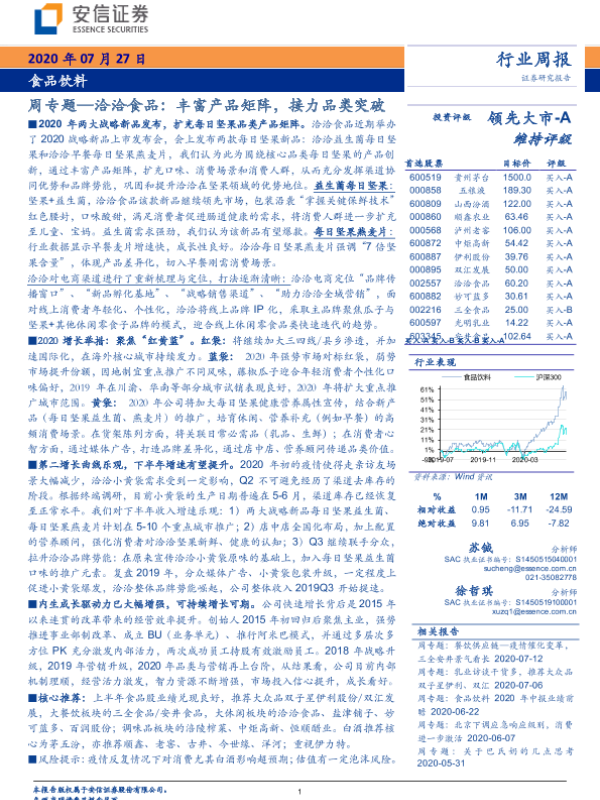 【安信证券】【20200727】食品饮料行业周专题—洽洽食品:丰富产品矩阵,接力品类突破-19页 行业研究