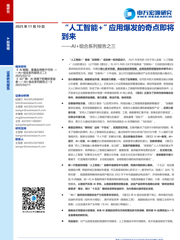【申万宏源】【202511】“人工智能+”应用爆发的奇点即将到来-14页 证券期货研究报告