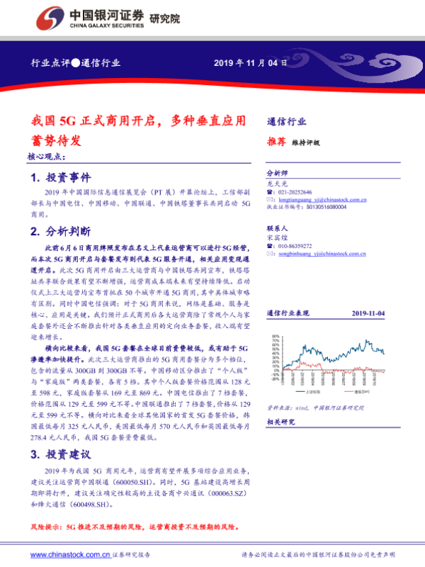 【银河证券】【20191104】我国5G正式商用开启,多种垂直应用蓄势待发-3页 行业研究