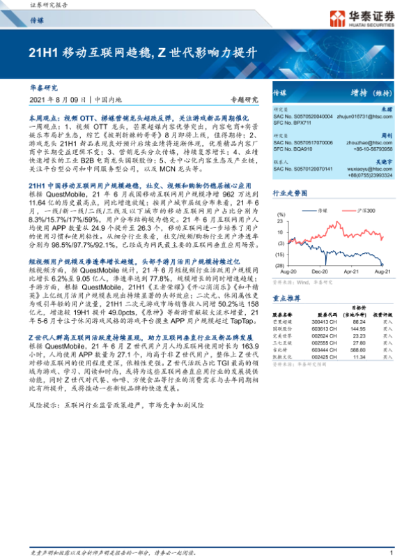 【华泰证券】【20210809】21H1移动互联网趋稳,Z世代影响力提升-13页 行业研究