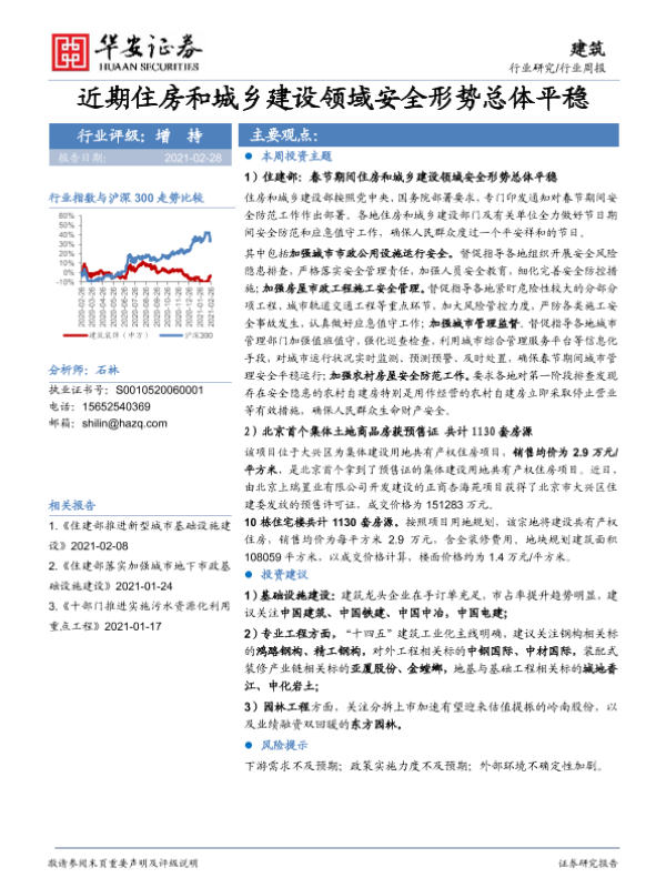 【华安证券】【20210228】建筑行业周报:近期住房和城乡建设领域安全形势总体平稳-15页 行业研究
