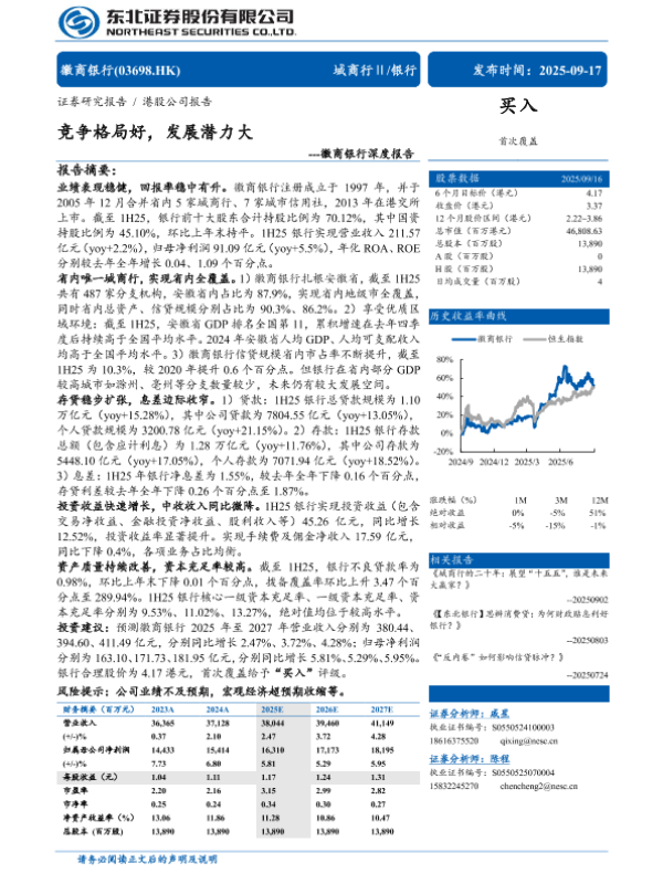 【东北证券】【202509】竞争格局好,发展潜力大---徽商银行深度报告-30页 证券期货研究报告