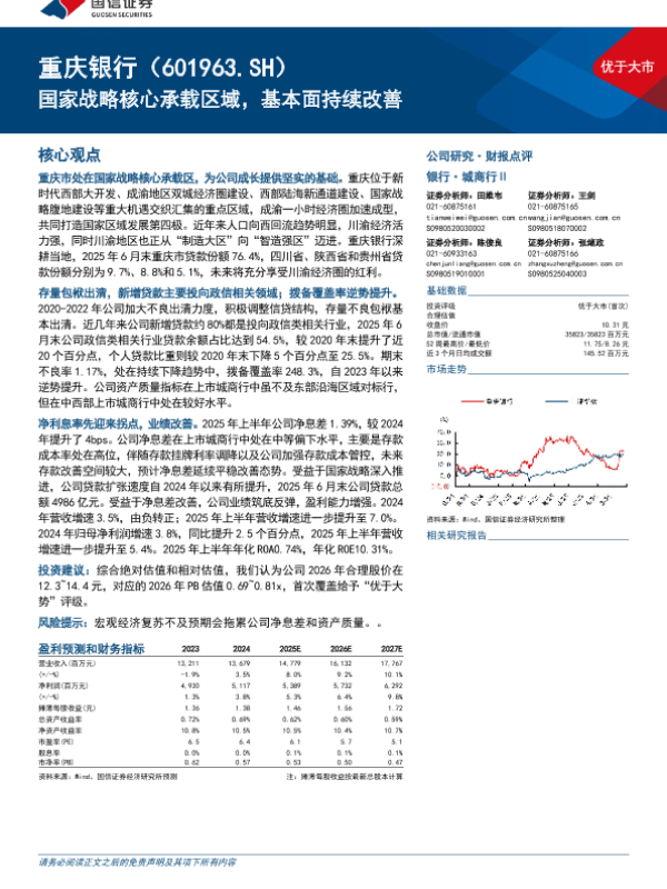 【国信证券】【202510】重庆银行(601963)国家战略核心承载区域,基本面持续改善-16页 证券期货研究报告