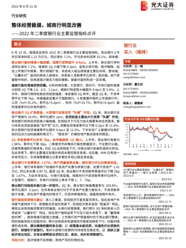 【光大证券】【20220821】2022年二季度银行业主要监管指标点评-8页 行业研究