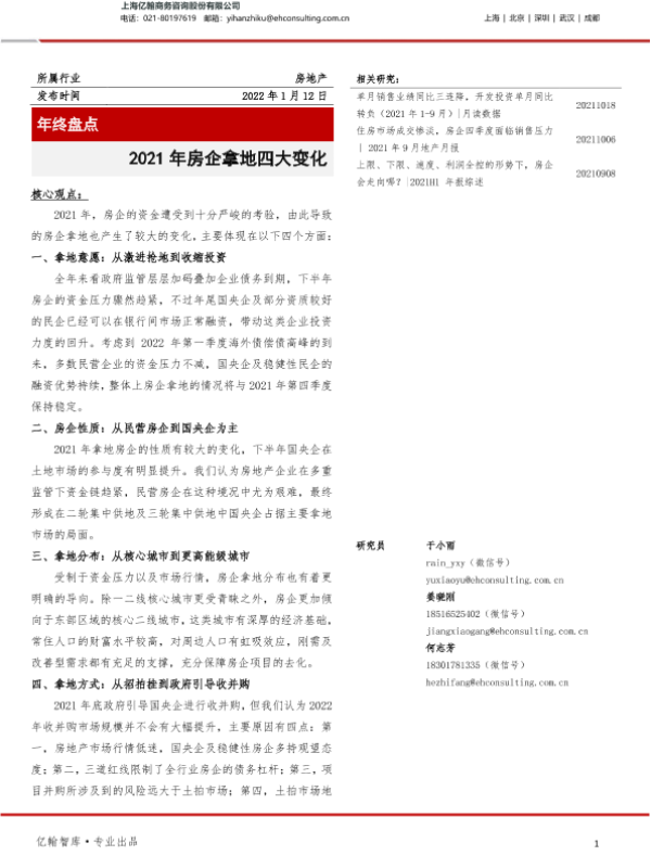 【亿翰智库】【20220112】2021年房企拿地四大变化-10页 行业研究