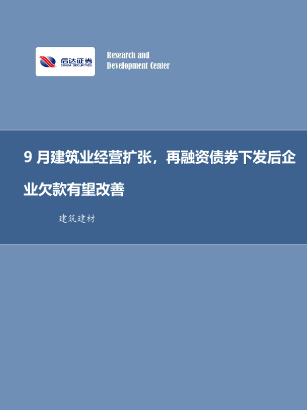 【信达证券】【20231008】9月建筑业经营扩张,再融资债券下发后企业欠款有望改善-34页 行业研究