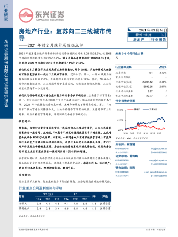 【东兴证券】【20210316】2021年前2月统计局数据点评:房地产行业:复苏向二三线城市传导-8页 行业研究
