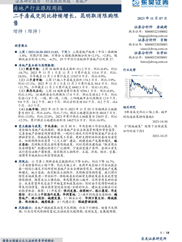 【东吴证券】【20231107】房地产行业跟踪周报:二手房成交同比持续增长,昆明取消限购限售-18页 行业研究