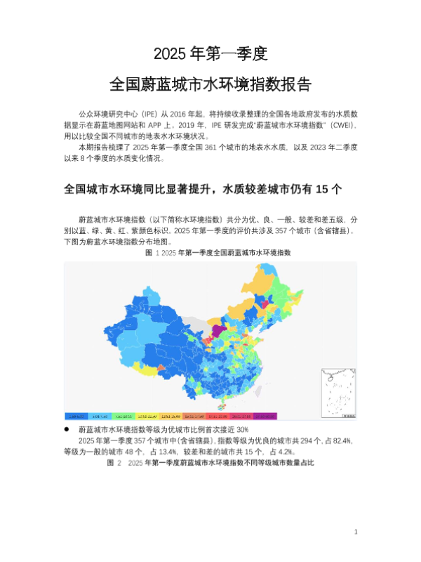 【公众环境研究中心(IPE)】【2025】2025年第一季度全国蔚蓝城市水环境指数报告-26页 白皮书