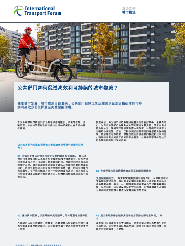 【国际运输论坛/经济合作与发展组织】【202411】公共部门如何促进高效和可持续的城市物流-2页 政策文件