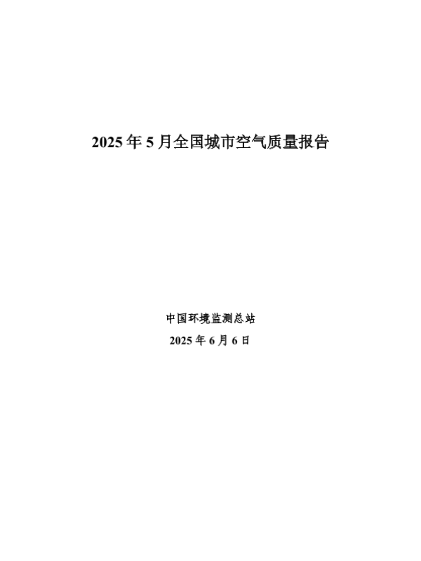 【中国环境监测总站】【20250606】2025年5月全国城市空气质量报告-10页 行业研究