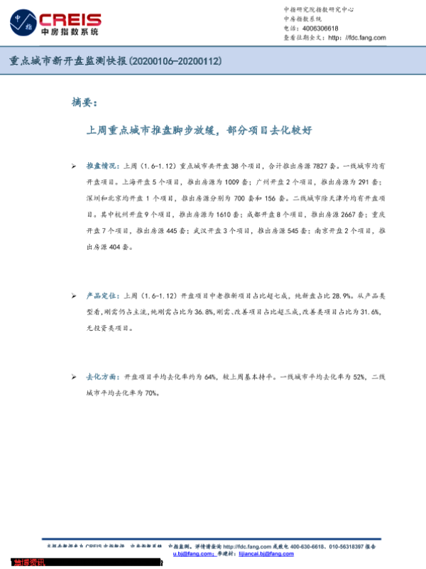 【中指研究院】【20200112】重点城市新开盘监测快报-4页 市场调研