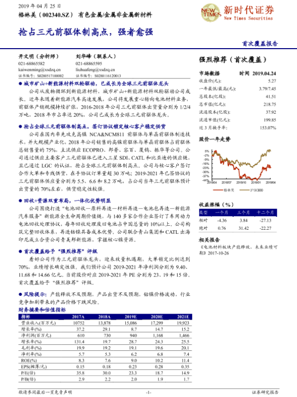【新时代证券】【20190425】抢占三元前驱体制高点,强者愈强-27页 行业研究