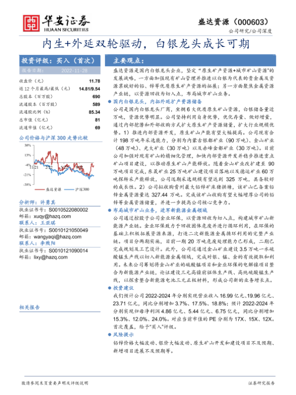 【华安证券】【20221128】内生+外延双轮驱动,白银龙头成长可期-22页 行业研究