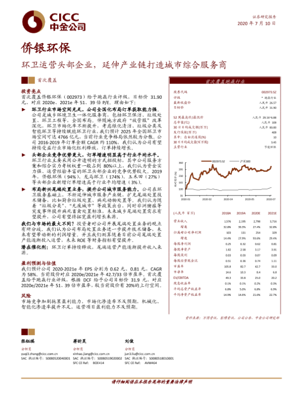 【中金公司】【20200710】侨银股份-环卫运营头部企业,延伸产业链打造城市综合服务商-29页 行业研究