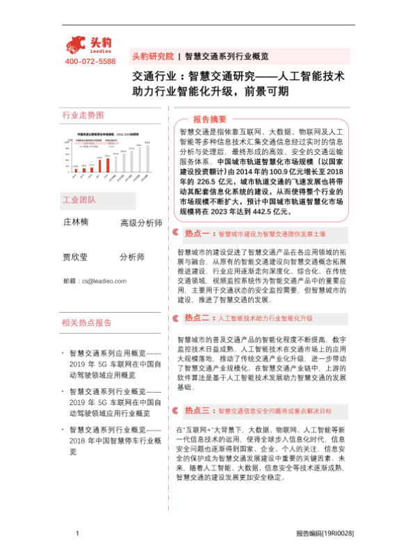 【头豹研究院】【20201119】交通行业:智慧交通研究——人工智能技术助力行业智能化升级,前景可期-44页 行业研究