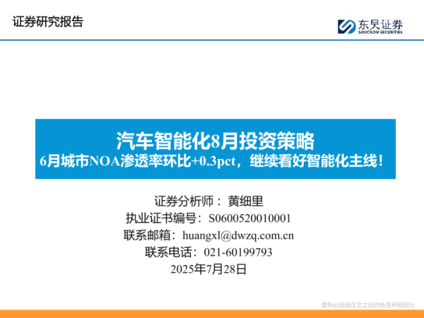 【东吴证券】【202507】汽车智能化8月投资策略-46页 证券期货研究报告