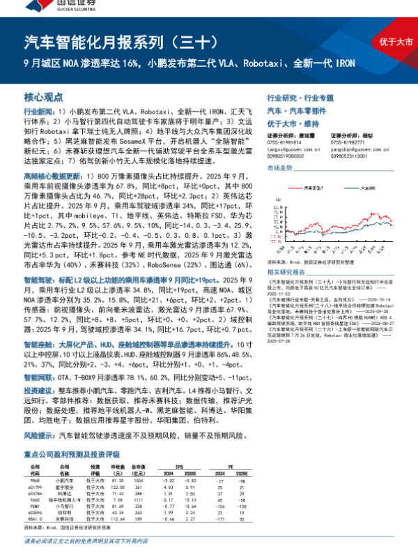 【国信证券】【202511】汽车行业智能化月报系列(三十):9月城区NOA渗透率达16%,小鹏发布第二代VLA、Robotaxi、全新一代IRON-63页 证券期货研究报告