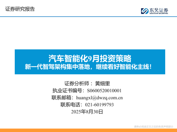 【东吴证券】【20250830】汽车智能化9月投资策略-新一代智驾架构集中落地,继续看好智能化主线!-48页 证券期货研究报告