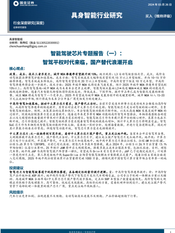 【国金证券】【202503】智能驾驶芯片专题报告-智驾平权时代来临国产替代浪潮开启-25页 证券期货研究报告