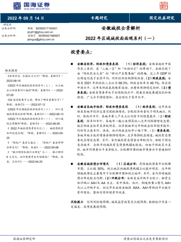 【国海证券】【20220914】2022年区域城投面面观系列(一):安徽城投全景解析-23页 行业研究