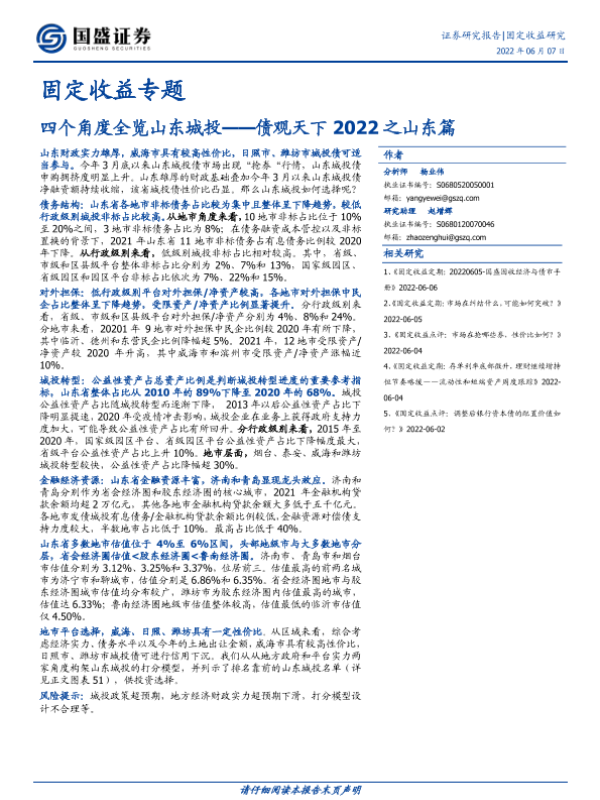 【国盛证券】【20220607】债观天下2022之山东篇:四个角度全览山东城投-55页 行业研究