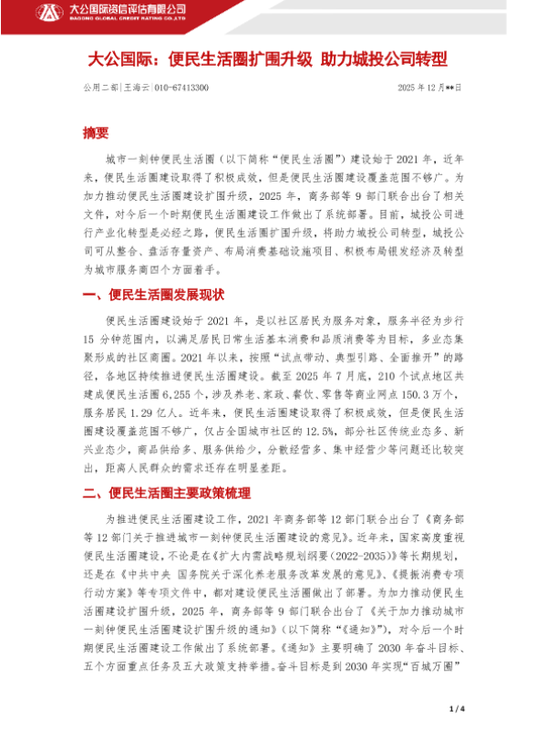 【大公国际】【202512】便民生活圈扩围升级助力城投公司转型-4页 行业研究
