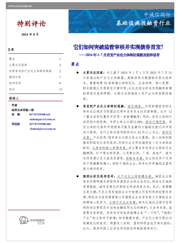 【中诚信国际】【20240819】基础设施投融资行业2024年1-7月首发产业化主体特征观察及延伸思考:它们如何突破监管审核并实现债券首发?-13页 行业研究