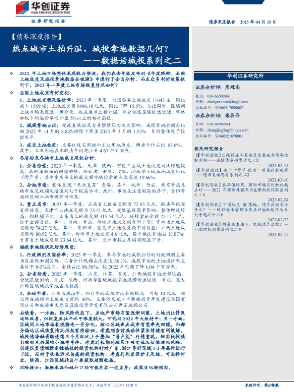 【华创证券】【20230413】数据话城投系列之二:热点城市土拍升温,城投拿地数据几何?-17页 行业研究