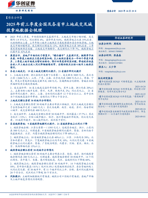 【华创证券】【202510】2025年前三季度全国及各省市土地成交及城投拿地数据全梳理-13页 证券期货研究报告