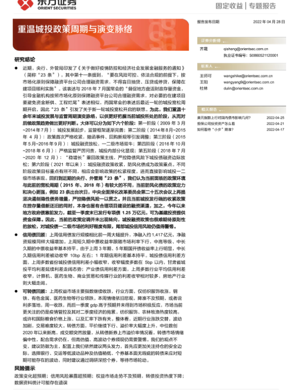 【东方证券】【20220428】固定收益专题报告:重温城投政策周期与演变脉络-24页 行业研究