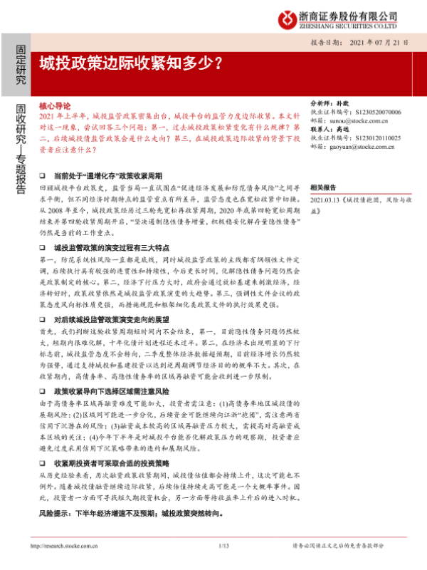 【浙商证券】【20210721】城投政策边际收紧知多少?-13页 行业研究