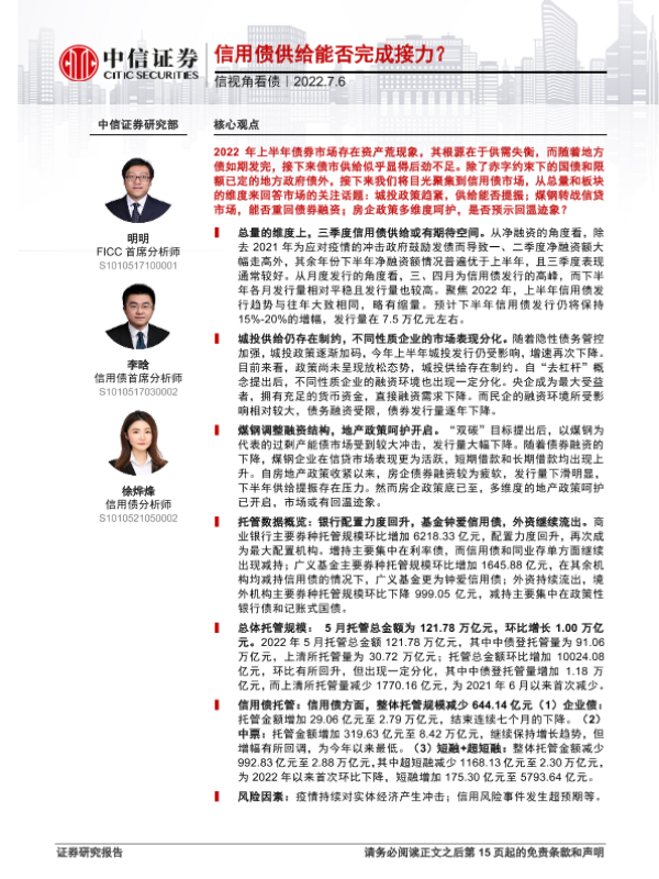 【中信证券】【20220706】信视角看债:信用债供给能否完成接力?-16页 行业研究
