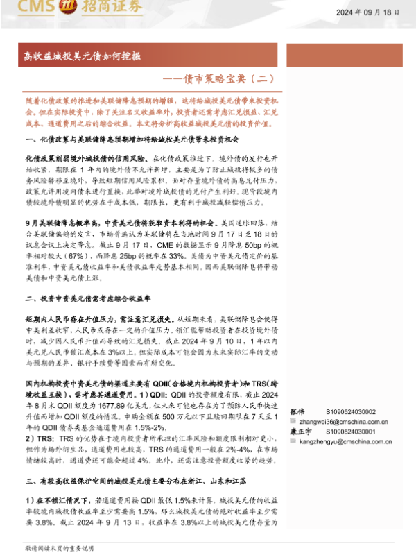 【海通证券】【20240918】2024年09月30日更新-【招商证券】债市策略宝典(二):高收益城投美元债如何挖掘-14页 行业研究
