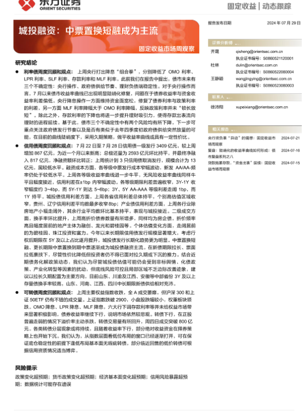 【东方证券】【20240729】固定收益市场观察:城投融资,中票置换短融成为主流-22页 行业研究