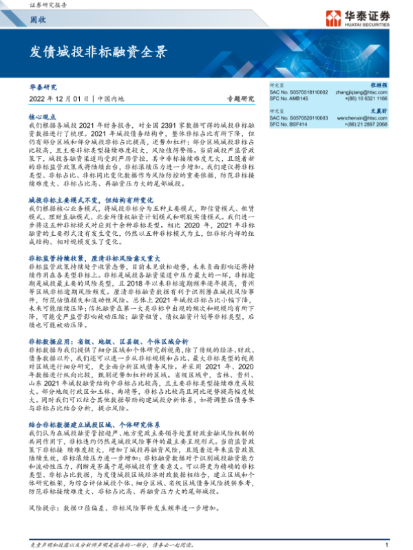 【华泰证券】【20221201】固收专题研究:发债城投非标融资全景-20页 行业研究